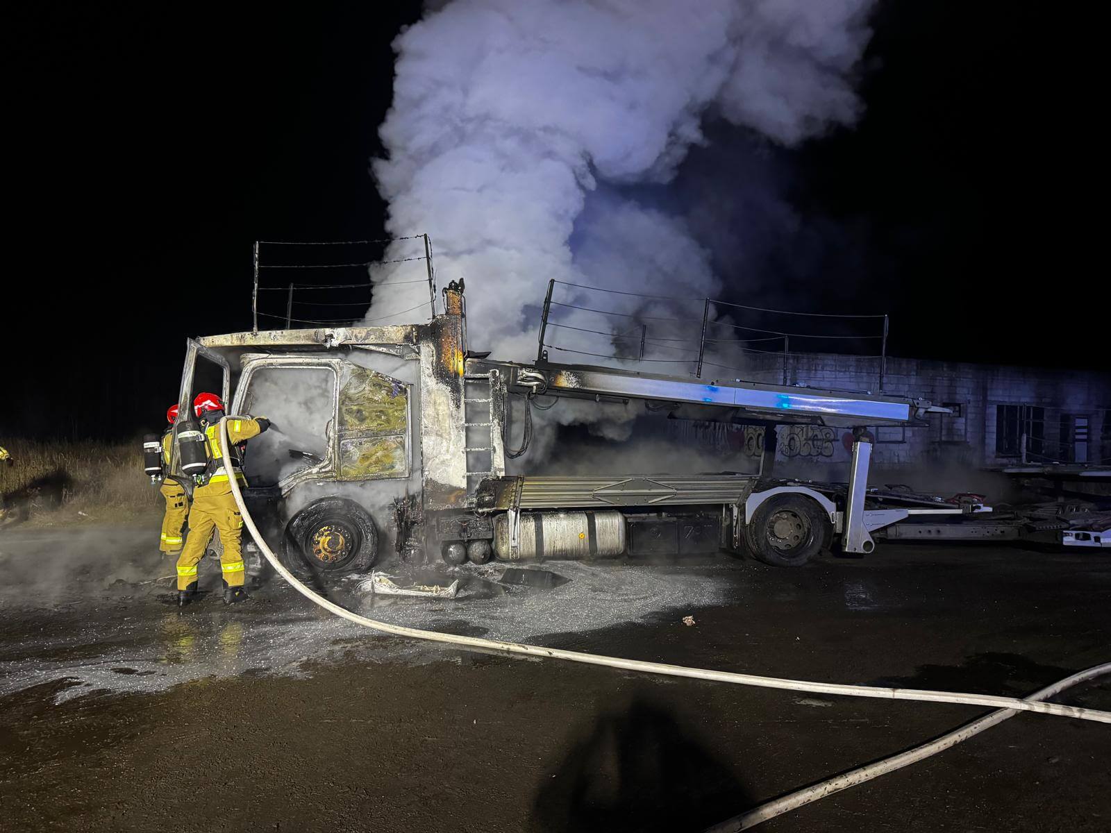 Pożar ciężarówki DK22 - Straż pożarna Sulęcin